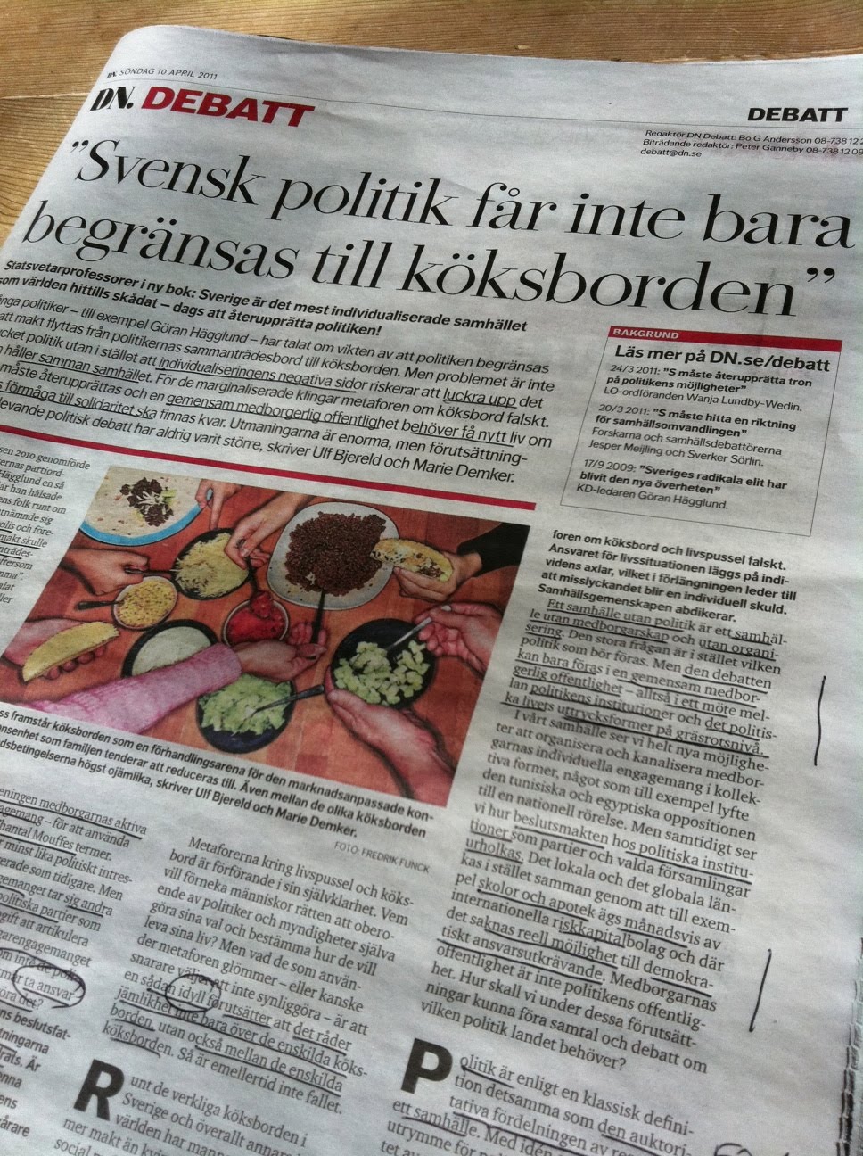 Men mycket av författarnas resonemang tycks handla om VAD som ska få bestämmas på politisk nivå. Jag uppfattar att de tycker att Göran Hägglunds resonemang bara kan vara relevanta i ett samhälle där jämlikhet och jämställdhet nått mycket längre än i dag. De lägger sedan ut texten om ekonomisk ojämlikhet, om könsmaktsordning, den traditionella kärnfamiljen och tendensen att låta diskussionen bortse från missbrukare, sjuka och marginaliserade människor.